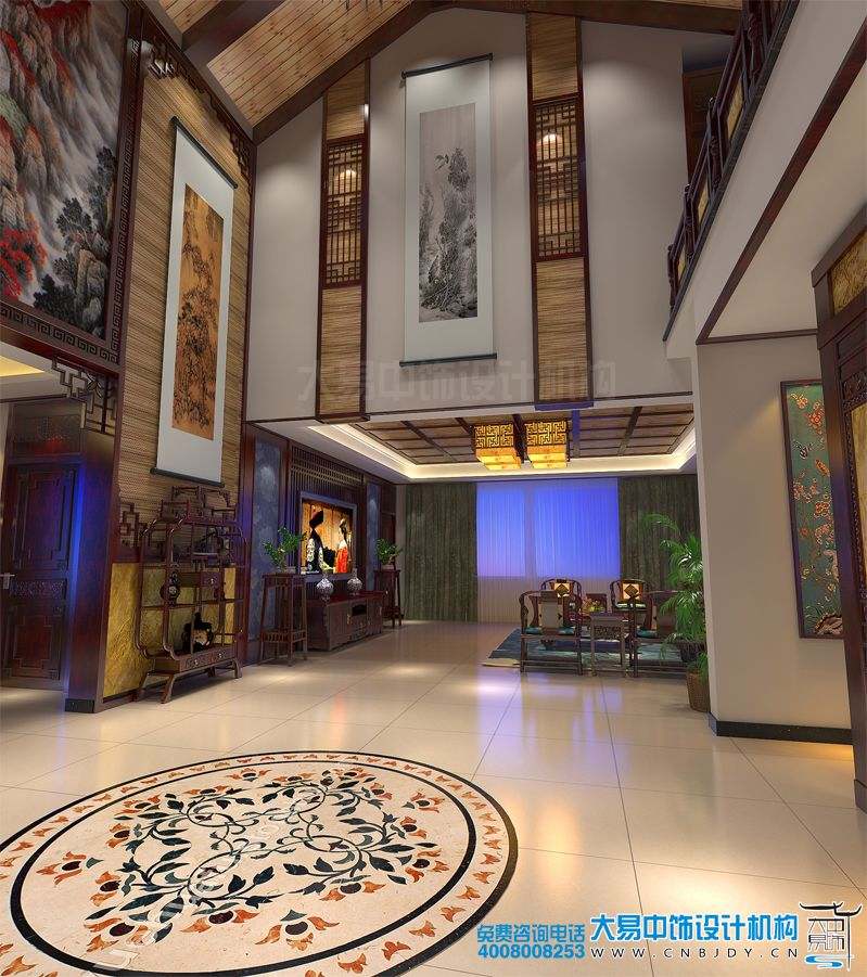 別墅門廳時尚美觀,中式古典畫的裝飾,表現出極致高雅的東方風韻