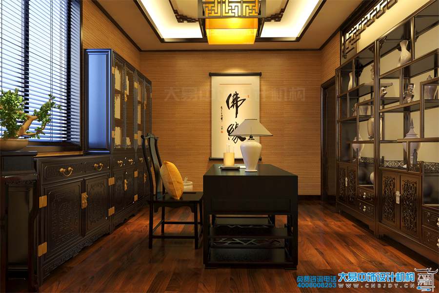 中式書房家具顏色很重,空間儒雅氛圍也更加濃郁