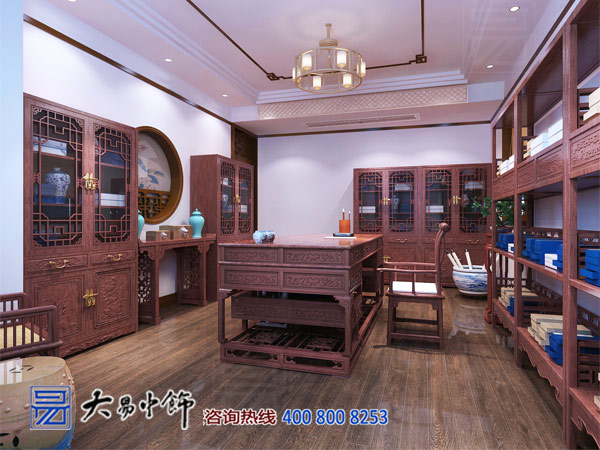 業主是喜文之人。在工作生活之余,常常鉆研字畫、學習經書史傳。書房以實木柜為墻面裝飾,再無他物。