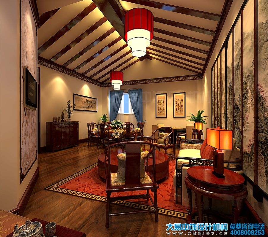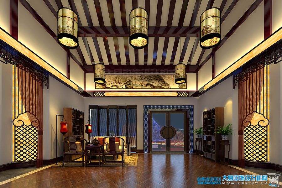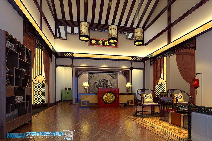 案例賞析:簡(jiǎn)約中式風(fēng)格的餐飲會(huì)所裝修效果圖,創(chuàng)造了屬于視覺(jué)上的那種寧?kù)o與清雅的感覺(jué),更增加了餐飲空間的溫馨基調(diào)與藝術(shù)感染力。在結(jié)合了古典建筑物的設(shè)計(jì)構(gòu)造與藝術(shù)品搭配上,大易中飾設(shè)計(jì)師更是精挑細(xì)選、力求達(dá)到與整體風(fēng)格統(tǒng)一的和諧感。比如,簡(jiǎn)練的木頂隔斷、大量的留白手法、厚重實(shí)用的中式家具、唯美清幽的古典燈飾、墨香儒韻的墻體掛畫(huà)等等,不管是從形態(tài)上,還是色彩上都能凸顯其優(yōu)雅高貴之韻。