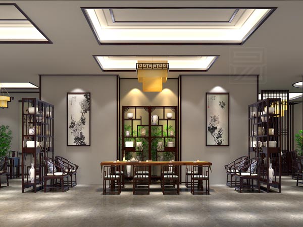 現代新中式紅木展廳設計 簡約禪意展館中式裝修