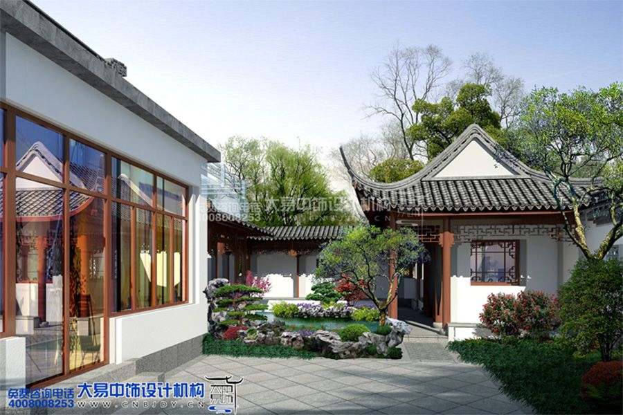 案例賞析:中式園林按照地域劃分主要分為兩大派:北方園林及江南園林。本套位于鄭州中式園林設計效果圖,取決于所在地域的優勢,以精致唯美的景觀塑造及空間處理手法傳承了古典亭臺閣樓及堆石藝術的精髓。融入大量的現代設計語言,讓傳統文化與現代時尚元素在時間的長河中得以邂逅。當然,它并不是純粹的傳統堆積,而是大易中飾設計師通過對古典文化的理解與認識,以現代人的審美需求打造出富有韻味的園林景觀。除此之外,最大的亮點當屬園中大量的白墻青瓦、廊柱亭榭多仿造江南園林的樣式,如同中式山水畫一般佇立于人們的眼前,溫婉秀美,引人入勝。