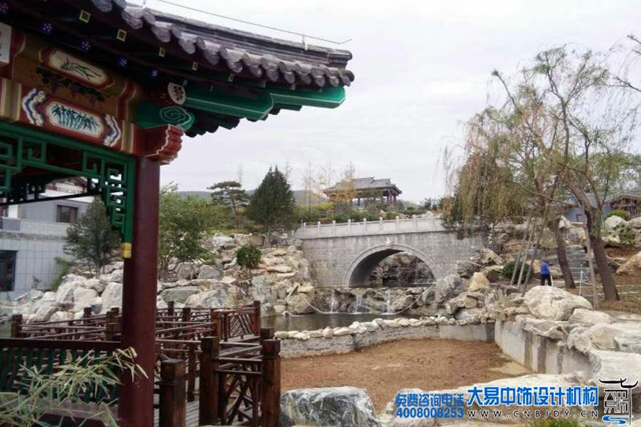 山東棗莊中式園林施工實景效果圖