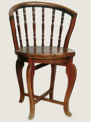 清末時(shí)期的寧波和上海被辟為“五口通商”口岸,在外貿(mào)經(jīng)濟(jì)的影響下,江南沿海地區(qū)一枝獨(dú)秀,保持著繁華景象,反映在家具制作上,則出現(xiàn)了中西合璧的家具樣式,民國(guó)小姐椅即是如此。從民國(guó)小姐椅上可以看到較多的西式造型和元素,如車木構(gòu)件、皮制座面、“十”字交叉或者“工”字形管腳棖、西番蓮紋等。盡管在造型和紋飾上,民國(guó)小姐椅與明式、清式小姐椅已大不一樣,但整體上依然是色彩艷麗、飾而不繁,給人的感覺(jué)依然是小巧雅致的,這也許正是小姐椅的精神之內(nèi)核。