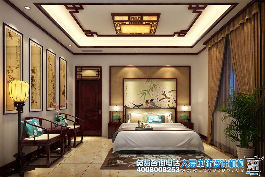 女兒房典雅奢華、一幅唯美的中式畫(huà)裝飾床頭,真乃國(guó)色天香之調(diào)