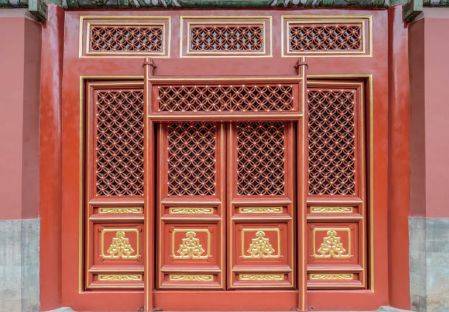 中式建筑中明間隔扇門一樘四扇,平時兩側的扇固定不開啟,僅開啟中間二扇。盡管如此,作為居住用房,兩扇隔扇形成的門洞也顯得太大而不合用,不僅開啟不便,對冬日保暖、夏日防熱也很不利。為限定門口尺寸及為掛門簾方便,于是,人們在開啟的兩扇隔扇門外側又貼附一層裝修,稱為簾架。