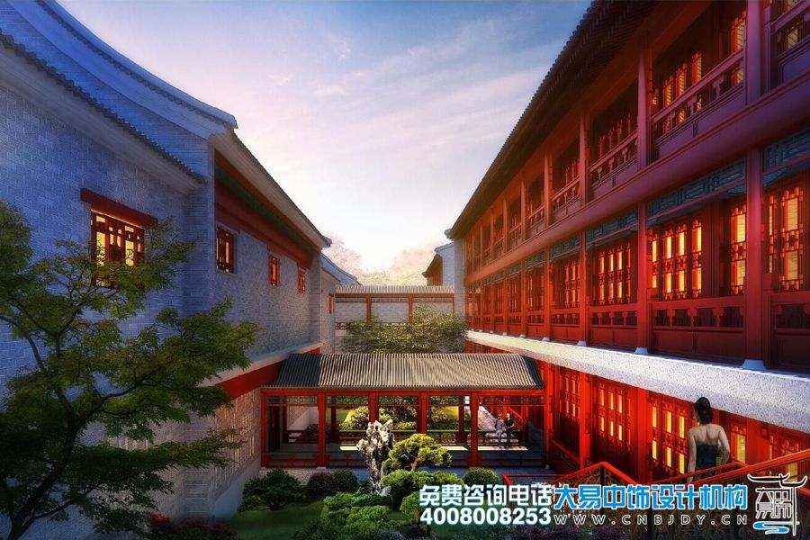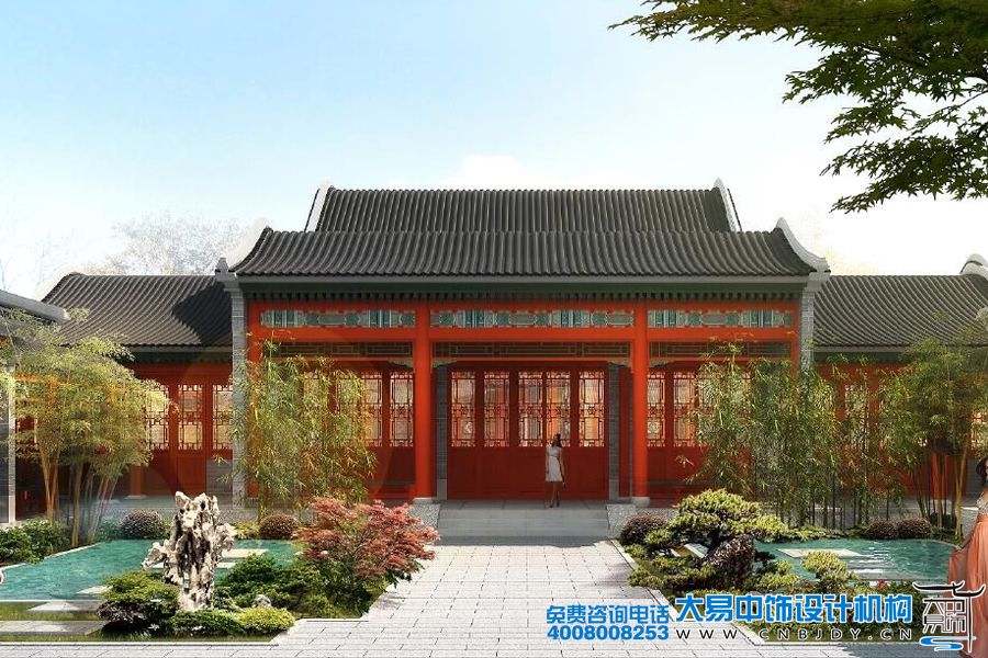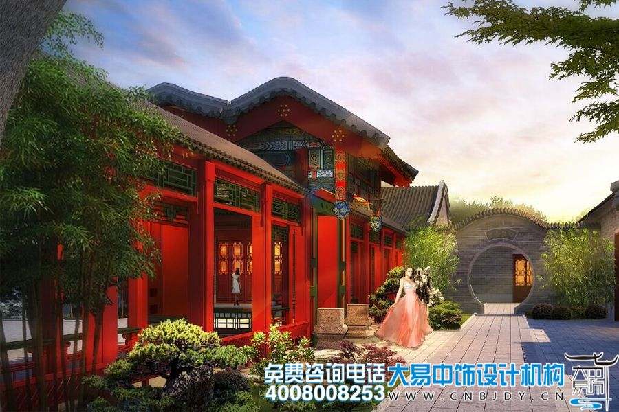 本套四合院中式設計裝修案例中是一個古典中式風格四合院設計規劃效果圖,因為四合院屬于我國古老、傳統的文化象征。所以,大易中飾設計師在規劃設計整個四合院建筑的時候,切合了原始的四合院構造造型以及大量的復古元素,加之與四周自然環境的糅合,更是應用到了古典廊柱、雕刻、水榭、亭臺設計,山借水景,水借山形,把深沉、濃郁的古典成分與現代裝飾技法協調一體,讓人有種步入仙境般的神奇景象,最具美感的藝術魅力,更能凸顯古典中式風格的文化深度。