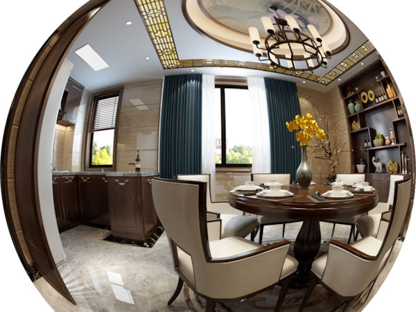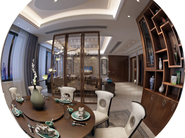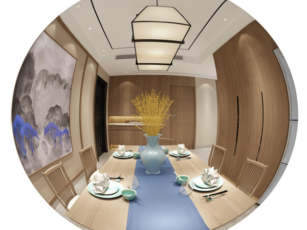 簡約中式別墅設計餐廳裝修視覺VR全景圖
