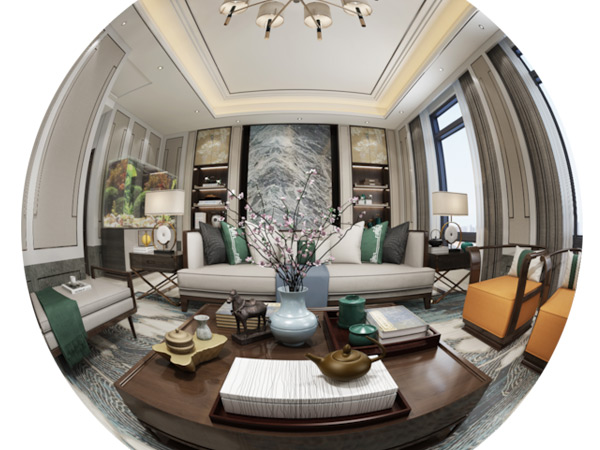 現代新中式風格客廳裝飾簡約大氣VR全景效果圖