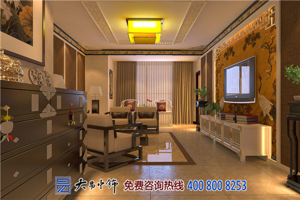 2.仙鶴圖案的沙發(fā)背景墻隔斷,使客廳顯得極具古典韻味,同時(shí),在客廳中劃分出休閑會(huì)客區(qū),大氣、整潔的沙發(fā),也符合中式的中規(guī)中矩感,而圓形溫馨的吊燈,則增添了不少時(shí)尚感。