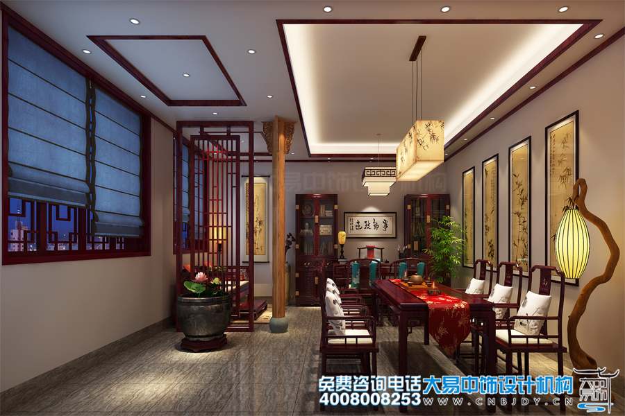 中式家具在室內擺放的話,要是全盤都運用現代家居裝修的辦法,會讓整個家庭變得過于沉重,可是,咱們在挑選中式家具的時候,要去合理的使用一些軟裝修,比方,一些淡色抱枕、桌巾、各種色彩的窗簾,才能夠讓整個中式四合院設計裝修中的書房空間展示安靜空氣。