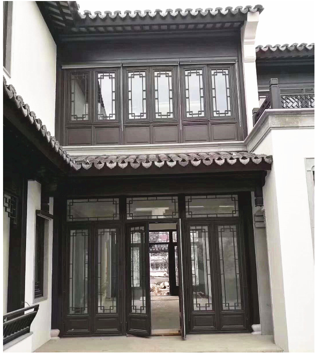 而其中的古典和民間中式建筑的特點(diǎn)是在于建筑材料的選擇:如青磚(包括墻磚和地磚)、弧形青瓦和掛瓦的選擇,木柱承重結(jié)構(gòu)、白色石灰粉刷基材。門(mén)窗的造型藝術(shù),則是中式建筑畫(huà)龍點(diǎn)睛之神筆。