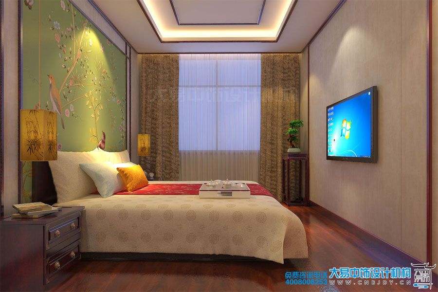 臥室裝修鑲嵌了水墨荷花圖,給整個(gè)空間增添了優(yōu)雅與古典風(fēng)情