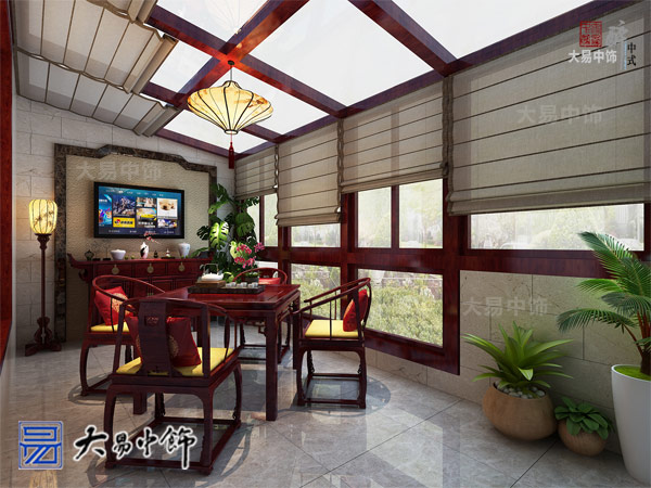 北邊的庭院面積較小,在房屋北側(cè),光照較差,因此做了陽(yáng)光房封閉,改為小餐廳使用,方便家人的簡(jiǎn)單用餐。