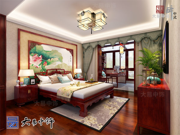 女兒房未做復(fù)雜的設(shè)計(jì)造型,床頭采用荷花作為中式設(shè)計(jì)元素,更加符合小女主的居住身份。