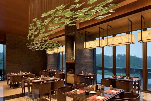 大易中飾會所餐飲餐廳中式設計效果想要營造的是具有東方神韻的獨特的空間氛圍的中式休閑會所餐飲,而不僅僅是單一的中式符號,通過中式風格的特征,表達對清雅含蓄、端莊風華的東方精