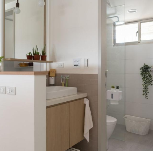 洗手臺(tái)外移后,可能會(huì)覺得光禿禿有點(diǎn)不美觀,所以空間足夠的話,可以做上隔斷進(jìn)行遮擋,像是黑框玻璃、鏤空隔斷都是個(gè)不錯(cuò)的選擇~